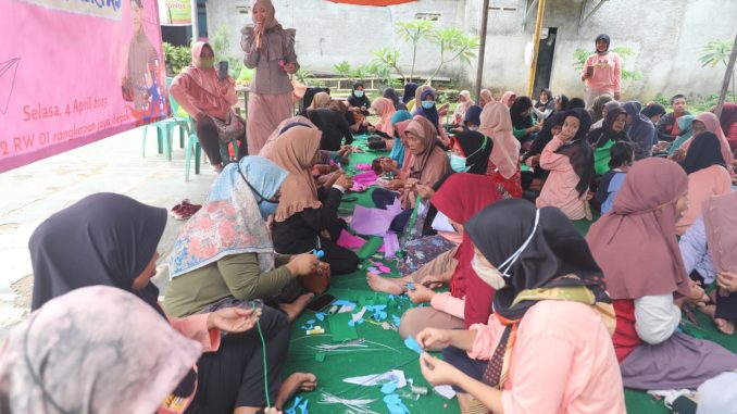 DEPOK, SP – Sukarelawan Ganjar Pranowo yang tergabung dalam Mak Ganjar Jabodetabek melakukan kegiatan ngabuburit asyik di tengah bulan suci Ramadan. Untuk menunggu waktu berbuka puasa, mereka menggelar kursus membuat bunga dari kertas bersama emak-emak di RT02 RW01 Rangkapan Jaya, Depok, Jawa Barat.