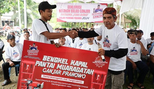 PANGANDARAN, SP – Ratusan nelayan di Pantai Muaragatah, Dusun Cireuma, Desa Kertamukti, Kecamatan Cimerak, Kabupaten Pangandaran, Jawa Barat mendeklarasikan dukungan kepada Ganjar Pranowo untuk menjadi Presiden 2024.