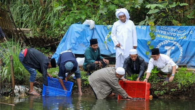 SUKABUMI, SP – Santri Dukung Ganjar (SDG) Jawa Barat melatih para santri muda atau milenial untuk cara berternak ikan nila. Program tersebut dimaksudkan merangsang minat santri muda dalam berwirausaha.