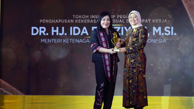 “Kita kasih penghargaan kepada para pengusaha, Serikat Pekerja/ Serikat Buruh (SP/SB), karena sesungguhnya mereka menjadi garda terdepan penghapusan kekerasan seksual di tempat kerja,” kata Menaker Ida.