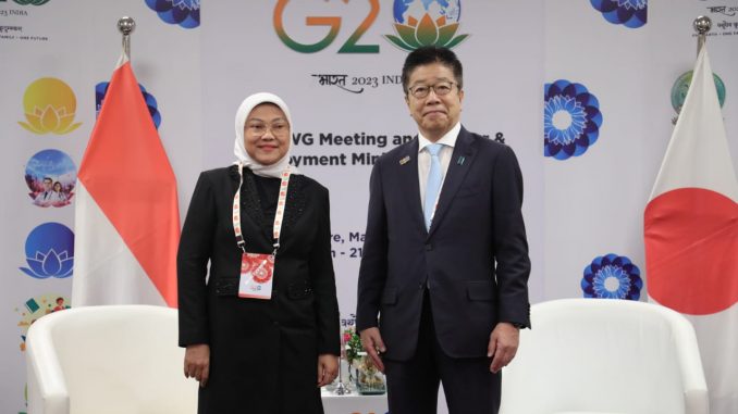 INDORE, SP – Menteri Ketenagakerjaan, Ida Fauziyah melakukan pertemuan bilateral dengan Menteri Kesehatan, Tenaga Kerja, dan Kesejahteraan Jepang, Katsunobu KATO di sela-sela menghadiri Presidensi G20 India. Pertemuan yang berlangsung pada Jumat (21/7/2023) di Indore, Jepang ini membahas 4 hal di bidang ketenagakerjaan.