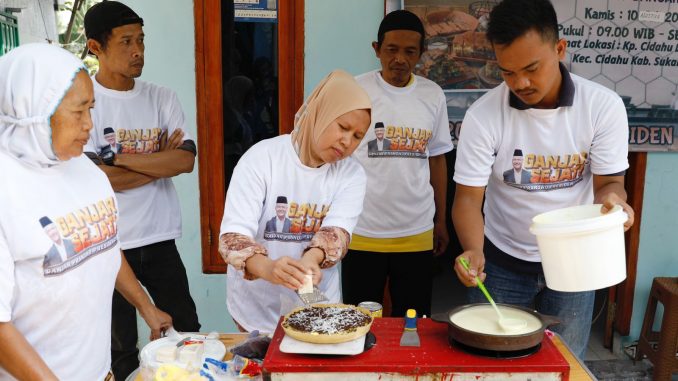 SUKABUMI, SP – Sukarelawan Ganjar Pranowo yang tergabung dalam Ganjar Sejati menggelar kegiatan pelatihan membuat martabak bagi warga di Kampung Babakan, Kelurahan Cicurug, Kecamatan Cicurug, Kabupaten Sukabumi, Jawa Barat.