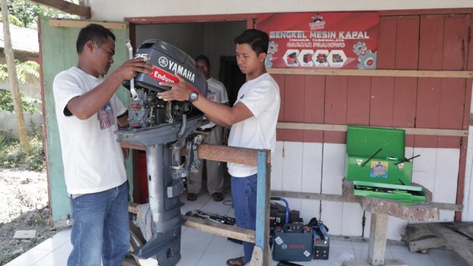 “Sangat mendukung untuk kebutuhan warga nelayan disini, yang biasanya kita harus jauh ke tempat mekanik, tapi sekarang alhamdulillah sudah ada bantuan kita bisa memperbaiki peralatan kita di sini,” papar Tatang.