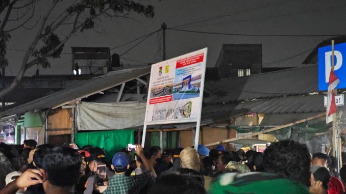 Lebih lanjut Indra menjelaskan, selama proses pemasangan plang sempat terjadi insiden adu mulut lantaran para pedagang menutup jalan.
