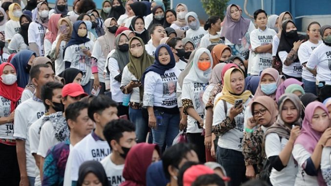SUBANG, SP – Ganjaran Buruh Berjuang (GBB) sebagai simpatisan Ganjar Pranowo menginisiasi bazar murah bertajuk “Warung Ganjaran” di PT Lestari Busana Anggun Mahkota, Desa Wanakerta, Kecamatan Purwadadi, Kabupaten Subang, Jawa Barat. Kegiatan ini melengkapi kunjungan pabrik dengan program “Goes to Pabrik”,
