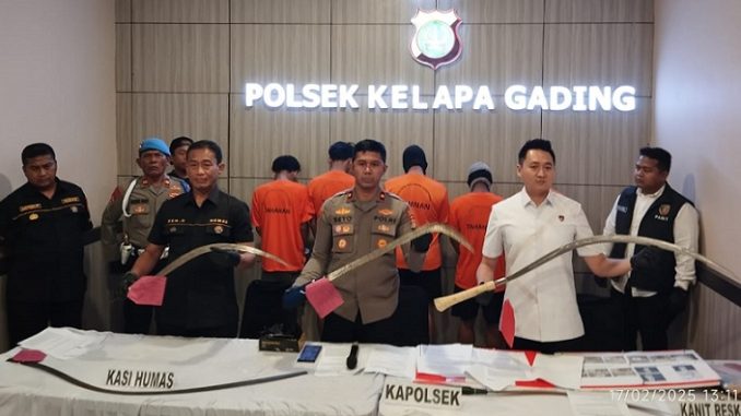 Kapolsek Kelapa Gading Kompol Seto Handoko Putra menjelaskan dalam kasus pertama pihaknya mengungkap sindikat jual beli senjata tajam untuk aksi duel tawuran dan begal. Kronologis kejadian terjadi pada Rabu (12/2/2025 sekitar jam 5 pagi di Jalan Mandiri Utara Kelurahan Kelapa Gading Timur.